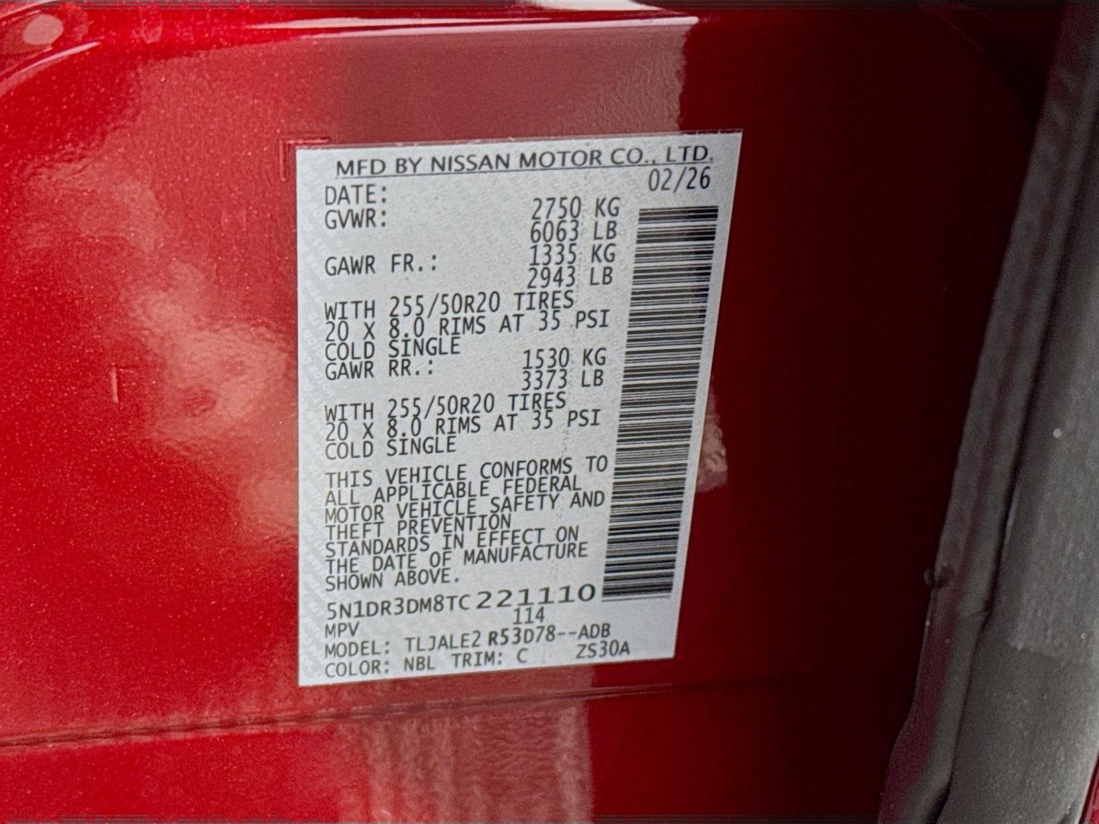 - Tires: P255/50R20 All-Season