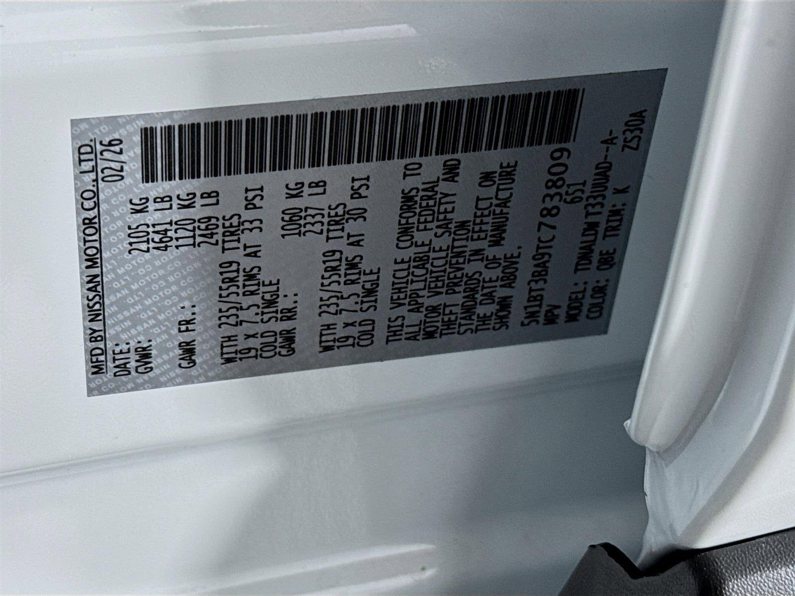 - Tires: P235/55R19 All-Season
