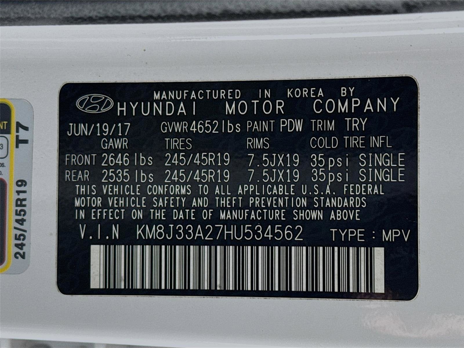 - Front Tire Size: P245/45HR19