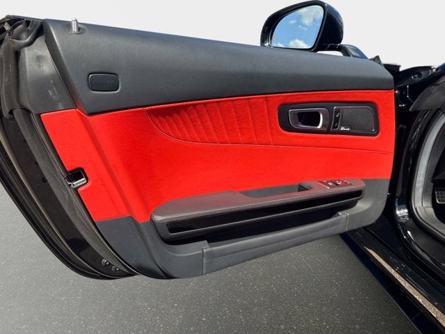 The exterior is finished in Black and paired with a red power soft top, while the cabin features AMG Classic Red/Black Exclusive Nappa leather upholstery along with a black DINAMICA headliner and AMG Performance steering wheel trimmed in DINAMICA.