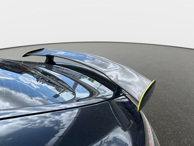 The 4.0-liter V8 features revised twin-turbochargers, exhaust ports, and throttle mapping for a factory rating of 577 horsepower and 517 lb-ft of torque. A carbon-fiber shroud covers the engine, and the oil was changed in November 2025. Power is routed to the rear wheels via a seven-speed dual-clutch automatic transaxle and an electronically controlled limited-slip differential. The car is equipped with a carbon-fiber driveshaft.