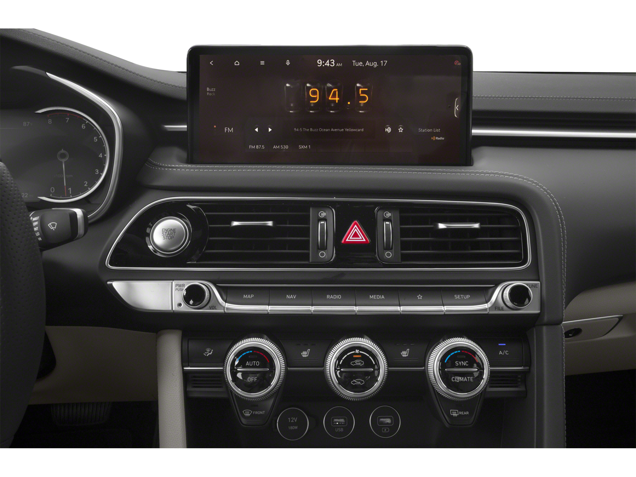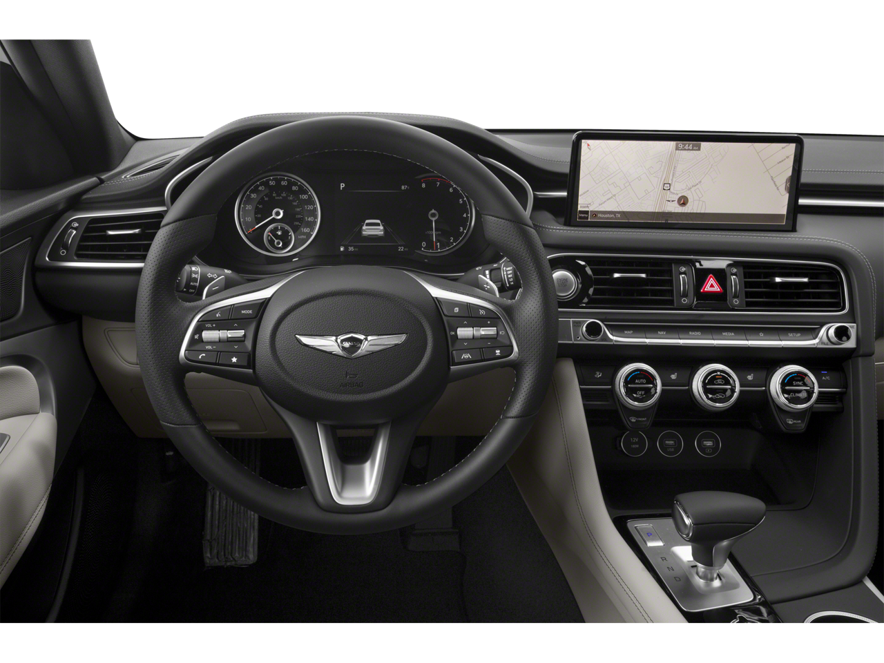 4-Way Power Lumbar Front Passenger Seat, 4-Wheel Disc Brakes, 6 Speakers, ABS brakes, Acoustic Front Door Glass, Air Conditioning, Alloy Pedals, Alloy wheels, AM/FM radio: SiriusXM, Android Auto & Apple CarPlay, Anti-whiplash front head restraints, Auto High-beam Headlights, Auto-dimming Rear-View mirror, Automatic temperature control, Brake assist, Bumper Applique, Bumpers: body-color, Dark Chrome Grille & Daylight Opening Trim, Delay-off headlights, Driver door bin, Driver vanity mirror, Dual front impact airbags, Dual front side impact airbags, Electronic Stability Control, Emergency communication system: Genesis Connected Services, Exterior Parking Camera Rear, Forward & Reverse Parking Distance Warning, Four wheel independent suspension, Front anti-roll bar, Front Bucket Seats, Front Center Armrest, Front dual zone A/C, Front Passenger Seat Walk-In Device, Front reading lights, Fully automatic headlights, Garage door transmitter: HomeLink, Heated door mirrors, Heated front seats, Heated Multi-Adjustable Front Bucket Seats, Illuminated entry, Integrated Memory System (IMS), Knee airbag, Leather Seating Surfaces, Leatherette Seating Surfaces, Low tire pressure warning, Mudguards, Navigation System, Occupant sensing airbag, Option Group 02, Outside temperature display, Overhead airbag, Overhead console, Panic alarm, Passenger door bin, Passenger vanity mirror, Power door mirrors, Power driver seat, Power Folding ECM Outside Mirrors, Power passenger seat, Power steering, Power Telescoping Steering Wheel, Power windows, Premium First Aid Kit, Radio: AM/FM/SiriusXM/HD Audio System, Radio: AM/FM/SiriusXM/HD Lexicon Prem Audio System, Rain-Sensing Wipers, Rear anti-roll bar, Rear reading lights, Rear seat center armrest, Rear window defroster, Remote keyless entry, Security system, Speed control, Speed-Sensitive Wipers, Split folding rear seat, Sport Aluminum Trim, Sport Prestige Package, Steering wheel mounted audio controls, Tachometer, Telescoping steering wheel, Traction control, Trip computer, Turn signal indicator mirrors, Variably intermittent wipers, Ventilated Front Seats, Wheels: 19" x 8.0J Fr & 19" x 8.5J Rr Alloy, Wheels: 19" x 8.0J Fr & 19" x 8.5J Rr Sport Alloy, Wide Sunroof, Wireless Device Charging.