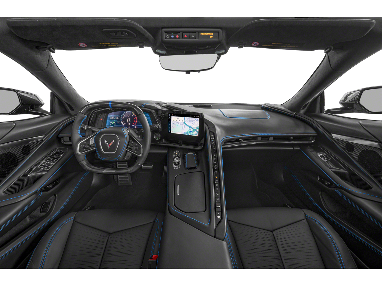 Standard 2LZ equipment includes the Bose Performance Series 14-speaker audio system, Performance Data and Video Recorder, Head-Up Display, Chevrolet Infotainment 3 Premium system with Google built-in capability, wireless Apple CarPlay and Android Auto, heated and ventilated GT bucket seats, heated steering wheel, rear camera mirror, Magnetic Selective Ride Control, 20-inch front and 21-inch rear wheels, Z06 rear spoiler, composite splitter and rockers, and a full suite of driver assistance features including Side Blind Zone Alert, Rear Cross Traffic Alert, Forward Collision Alert, Lane Keep Assist, and Automatic Emergency Braking.