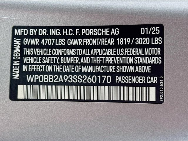Silver 2025 Porsche 911 Targa 4 GTS 3.6L H6 Turbocharged DOHC 24V LEV3-ULEV70